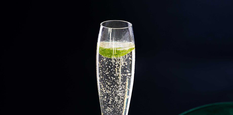Pour Black Tea Distillate into Champagne Flute & top with Champagne