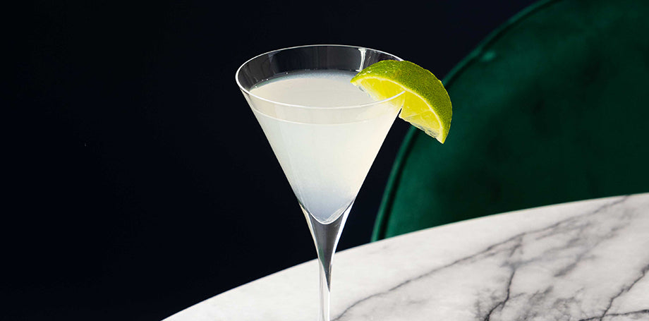 Cut lime into segments removing centre pith. Place in shaker with all other ingredients and ice. Shake very hard and empty contents of shaker directly into glass